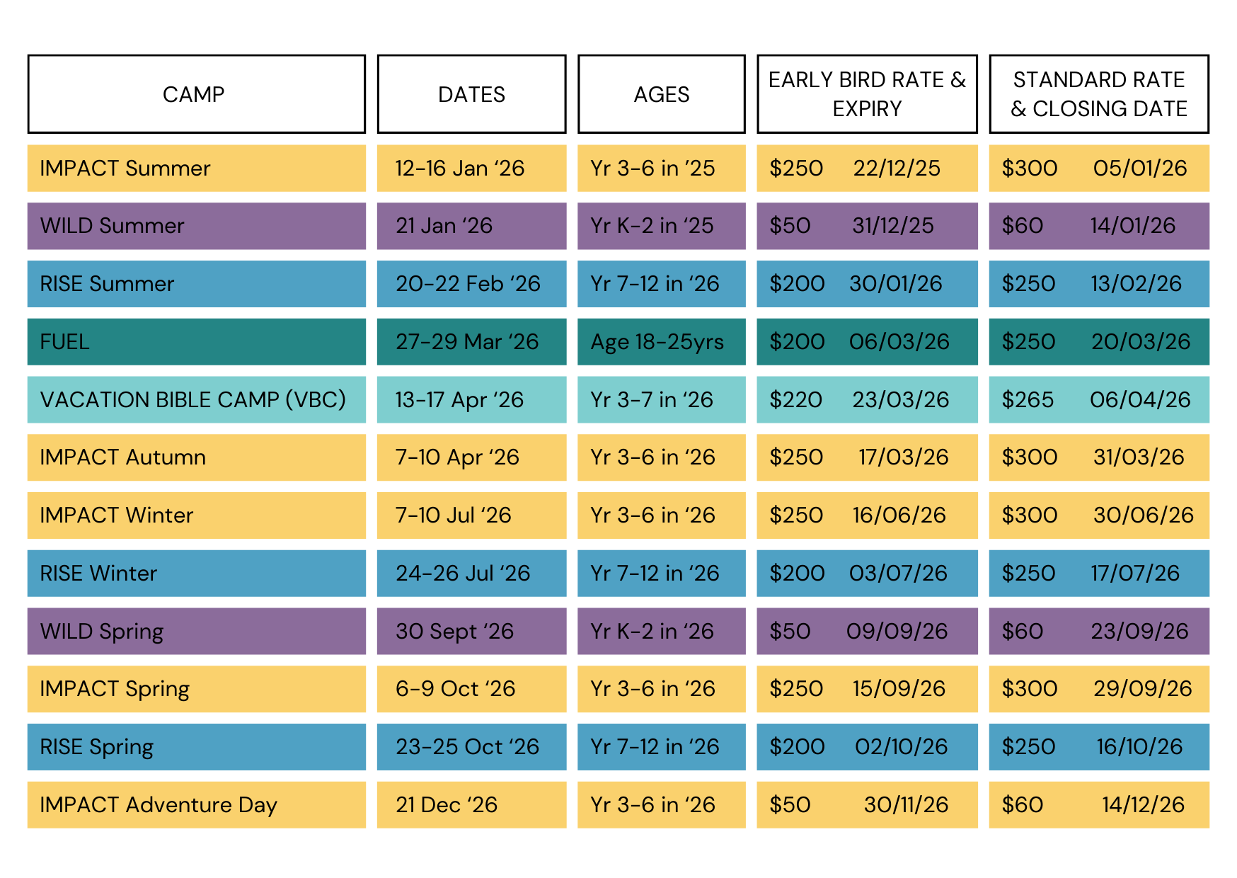 We are a child-safe environment. All of our staff & volunteers are required to have a current Working With Children Check and undertake Child Protection Training directly prior to each camp. Our Management Team are specially trained to respond to child protection concerns and disclosures.
